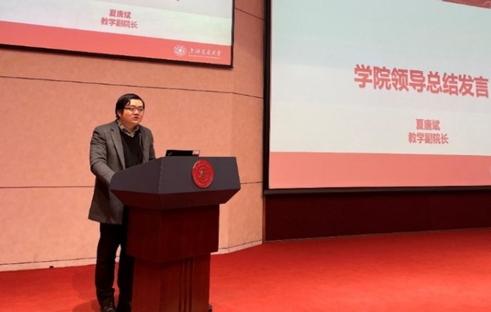 毕业设计课程负责人陈璐介绍了学院毕业设计改革历程与成果、2024届毕业设计实施方案,同时针对开题、中期、答辩审核等各个环节,强调了具体流程及注意事项。