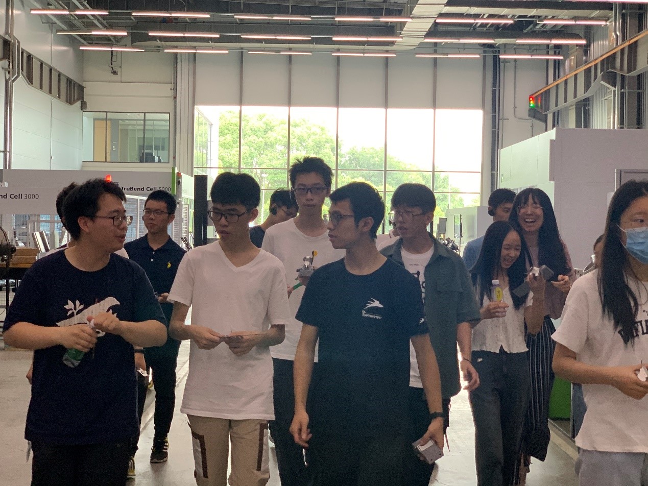 公司HR负责人向同学们总体介绍企业精神、企业文化,所从事的服务领域,然后工程师带领同学们参观了激光焊接机、数控冲床和数控折弯机等通快产品以及实现自动上下料的工业4.0智能工厂。之后由研发部门的交大校友与同学们进行座谈交流,通过他的讲述对通快的研发方向和运营理念有了进一步的了解。同时,同学们还现场折起了由通快数控折弯机生产的“金属折纸“,进一步提高同学对通快产品的兴趣和热情。