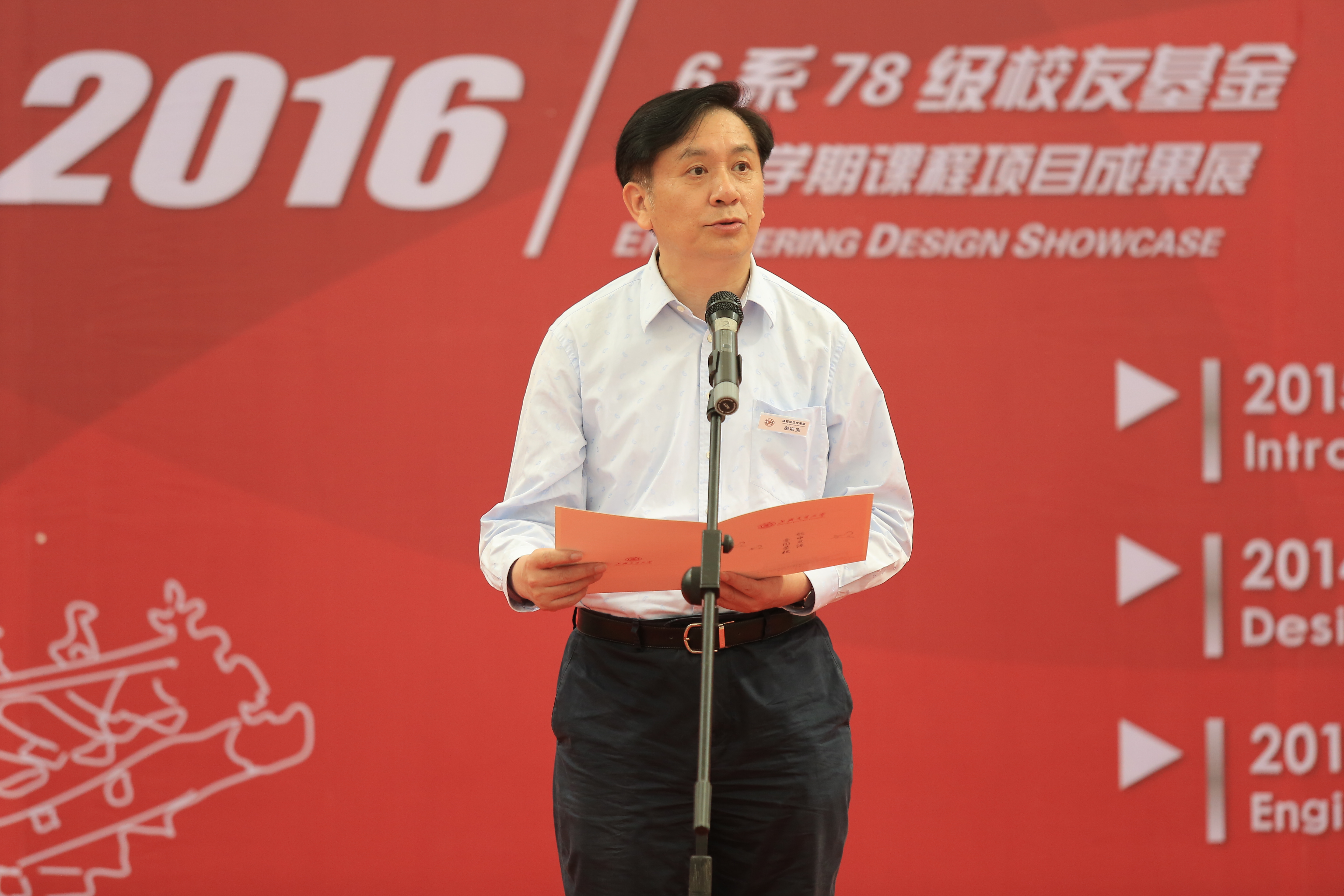 姜斯宪书记在开幕式致辞讲话,他引导大家思索中国大学如何培养时代需要的人才,他表示通过这一次次的项目式学习和项目成果展,学生的创新意识得到培养,交流沟通和团队合作能力得到提高,运用知识解决系统工程问题的能力得到训练和进步,这种项目式教学值得推广。姜书记在讲话中对6系78级饮水思源校友基金对本次项目展的大力支持表示感谢,对老师和同学们的努力表示嘉许。