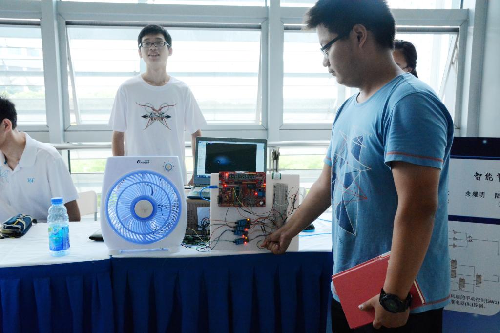 平价肘关节康复“神器”、省钱管家智能电扇、居家必备多功能头戴式控制器……这些奇思妙想近日都在beat365 手机版官方网站学子手中一一实现。6月14日,beat365 手机版官方网站2015年春季学期本科生课程项目成果展举行,共展出近千名本科生完成的《工程学导论》、《设计与制造I》及《工程设计》三门课程的217个课程设计项目。选题设计来自于校企合作项目、指导教师研究课题以及学生自选发明等。通过成果展示与校企专家评审的方式,让学生在展示过程中培养综合能力,在与专家及业界人士互动交流中激发创造力。