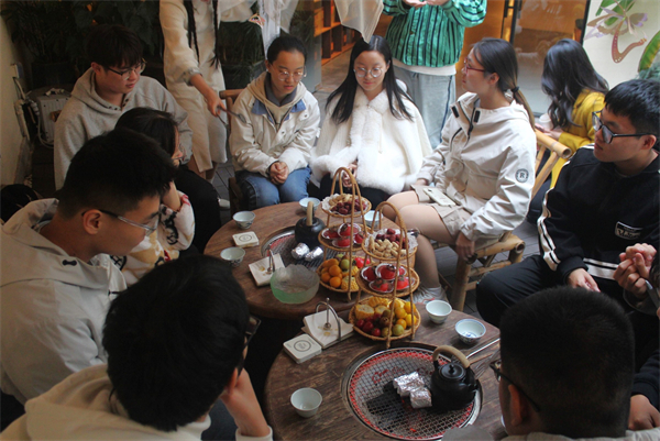 随后,党支部师生探访了坐落于静安寺街道的青年小店,分别探访时刻艺境公益驿站、沐白茶事和蕾虎空间。时刻艺境公益驿站以“环保”为主题,通过一系列装置艺术引导大家思考废物回收利用的方式与意义。驿站中的咖啡店为聋哑人提供就业岗位,尽显社会的关怀与温暖;沐白茶事闹中取静,为大城市中奔忙的人们提供闲适清雅的一隅。师生围炉煮茶,用炭火烘烤果子和白茶,驱散深秋的寒凉。围炉煮茶,闲有可栖,人间烟火气,最抚凡人心。蕾虎空间不定期与各类品牌进行合作,打造限时快闪,助力以设计为核心的中国设计师品牌推向市场。