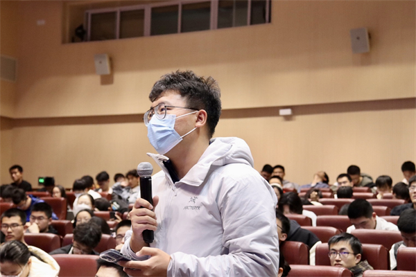 在自由提问交流环节,吴居宜和吴建明针对同学们提出的问题一一作答。吴建明围绕同学们关心的航天飞行器等专业技术进一步表达了他的看法,吴居宜则围绕就业形势和职业选择问题给出见解,鼓励同学们积极进行技术探索,增强基础能力。现场气氛热烈,同学们纷纷与专家、校友们互动交流。