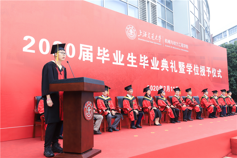7月11日,beat365 手机版官方网站2020届毕业生毕业典礼暨学位授予仪式在beat365 手机版官方网站A楼广场顺利举行。beat365 手机版官方网站党委常委、副校长奚立峰,beat365 手机版官方网站党委书记杜朝辉,院长兼党委副书记彭志科,党委副书记熊振华、张文明,副院长王丽伟、盛鑫军、齐飞,机电控制与物流装备研究所所长刘成良,工程热物理研究所所长赵长颖,工业工程与管理系主任潘尔顺,核科学与工程学院党支部书记刘晓晶,以及毕业生班主任、年级思政教师、年级教务共同出席本次典礼。典礼由张文明主持。