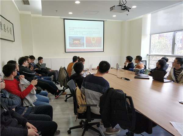 3月20日中午,机器人所研究生第四党支部在机械楼F207会议室召开“学习两会精神”主题组织生活会。支部指导老师郭莉及全体党员参加了会议,会议由支部书记袁锦春主持。