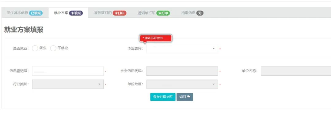 点击填报按钮后,输入相关信息后,点击保存并提交,状态转为待单位确认: