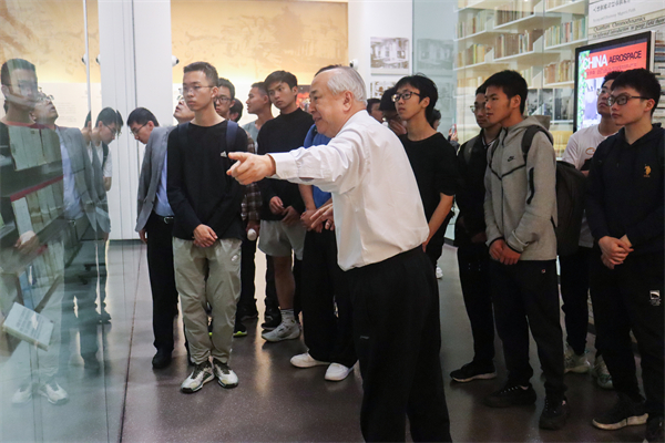 在钱学森图书馆展厅,钱永刚馆长带领同学们回顾了钱学森的学习和成长历程。钱学森学长在中小学阶段便养成了良好的学习习惯,在交大求学期间更是名列机械工程学院第一,坚实的知识基础是取得成就的基本保证。钱永刚馆长还特别强调要注重科学与哲学艺术的结合,鼓励同学们广泛涉猎不同学科、重视社会实践,关注综合素质的提升。