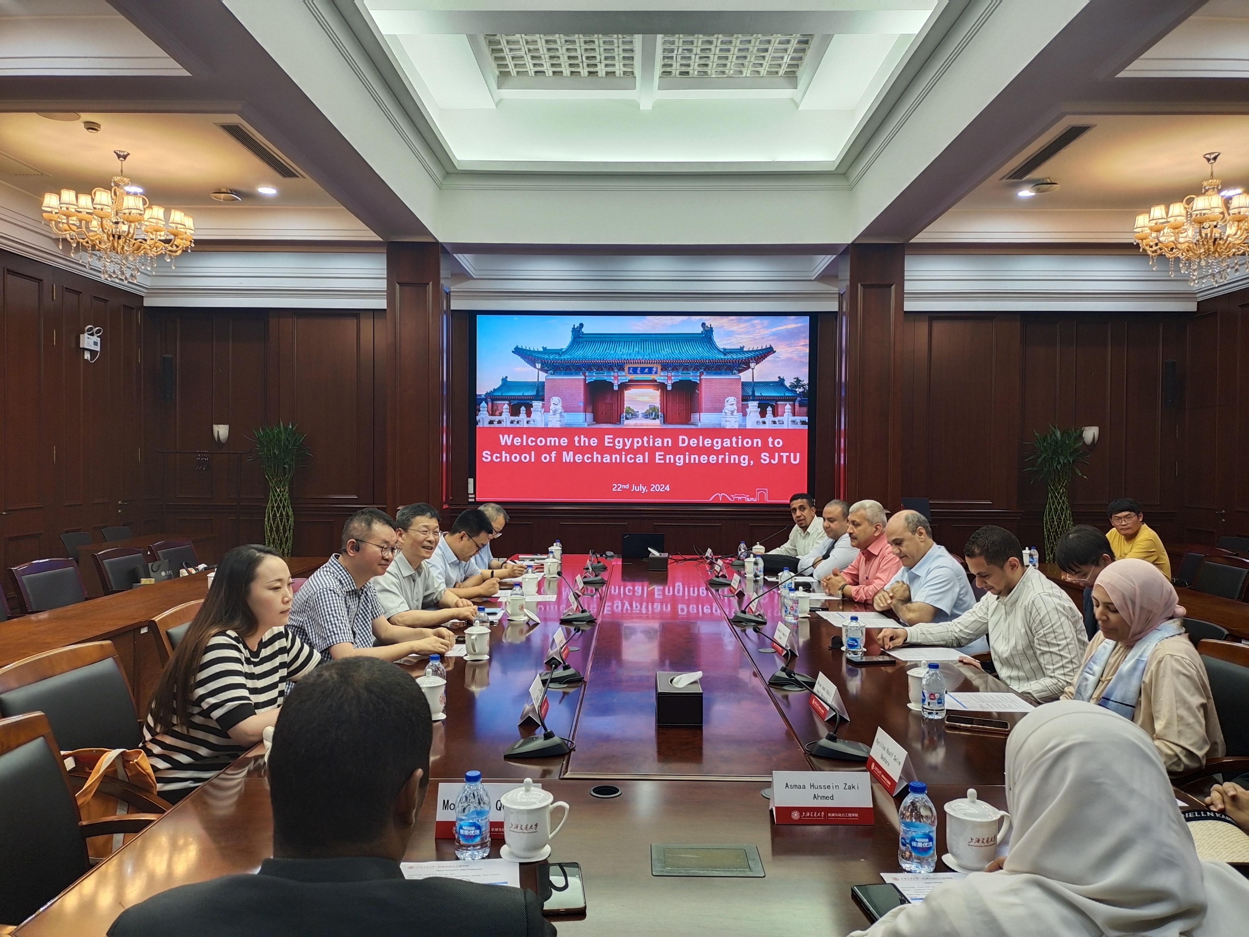 7月22日,埃及新开罗技术大学校长、学院2002届博士校友Tarek Abdelmalak Mekhail Gadallah及埃及高校代表团一行来访。beat365 手机版官方网站院长杜朝辉、副院长朱磊以及相关教师参加会谈。